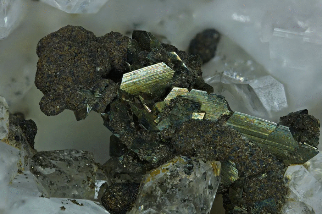 Below: Marcasite, Quartz, Rohdenhaus Quarry (incl. Krieger Quarry), Rohdenhaus, Wülfrath, Mettmann, Düsseldorf, North Rhine-Westphalia, Germany.