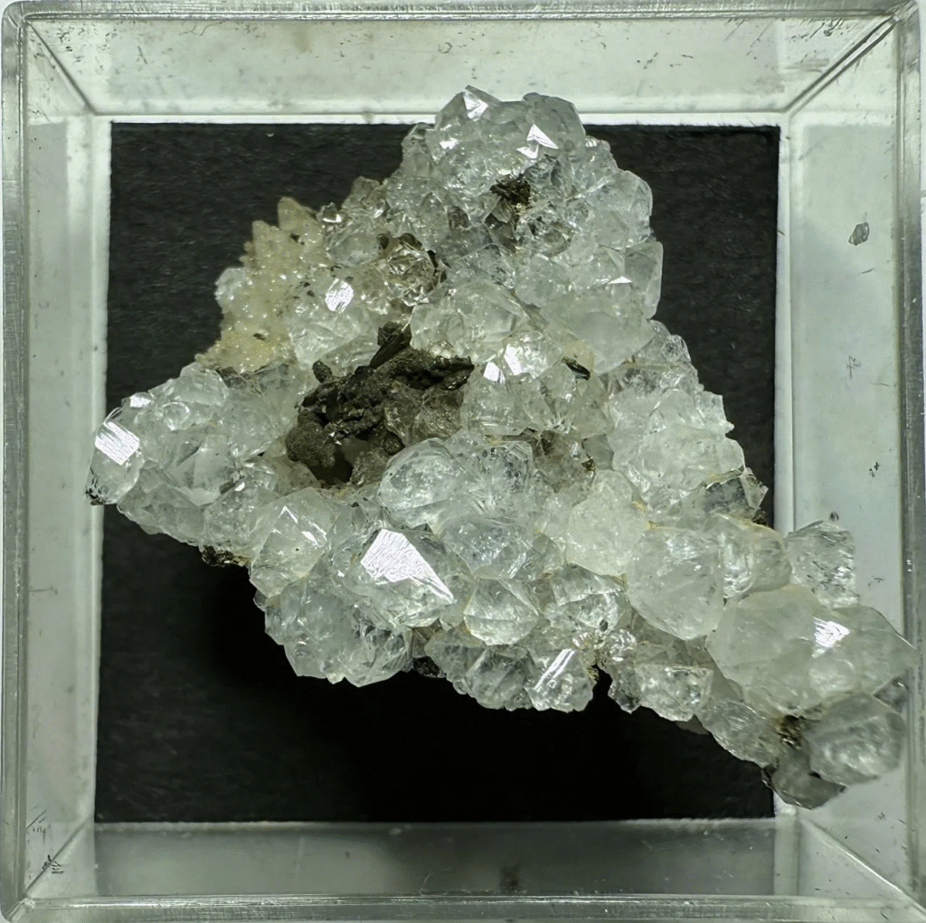 Description: Sharp crystals of marcasite on quartz. Specimen comes in a micro box. Closeup photo width 6mm.