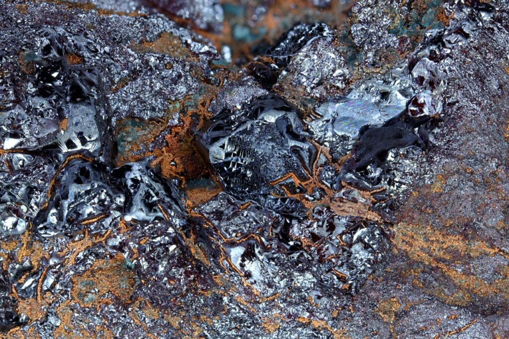 Below: No. 534 Cuprite, Copper, Magpie Mine, Cloncurry, Queensland. Width of view 9mm.
